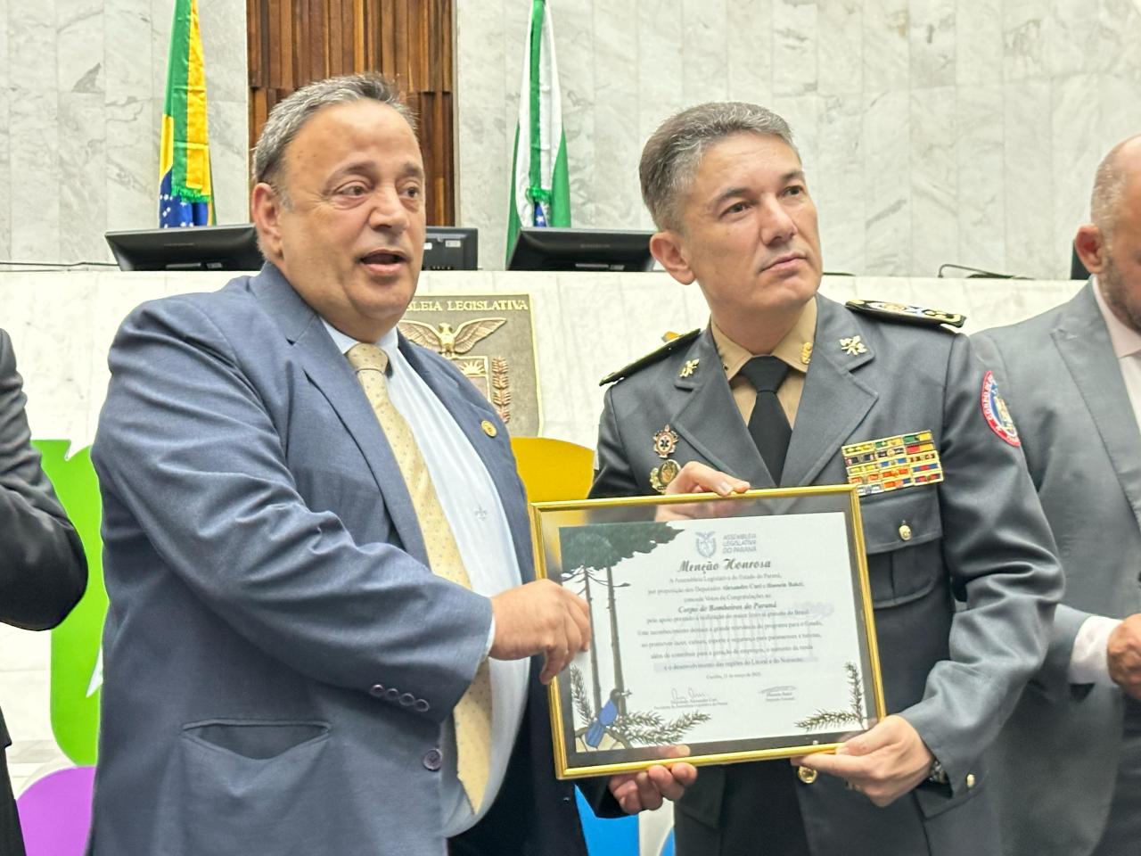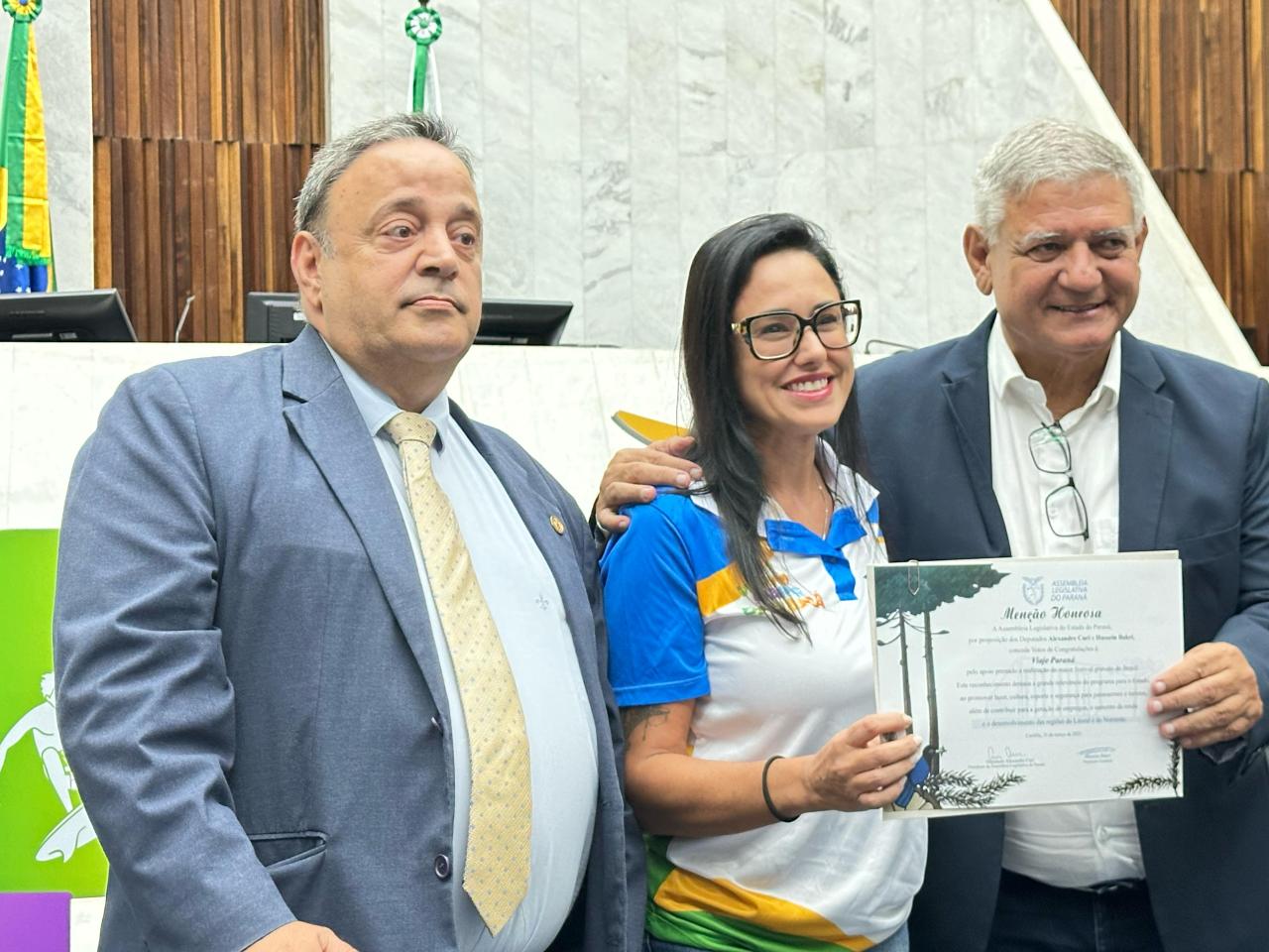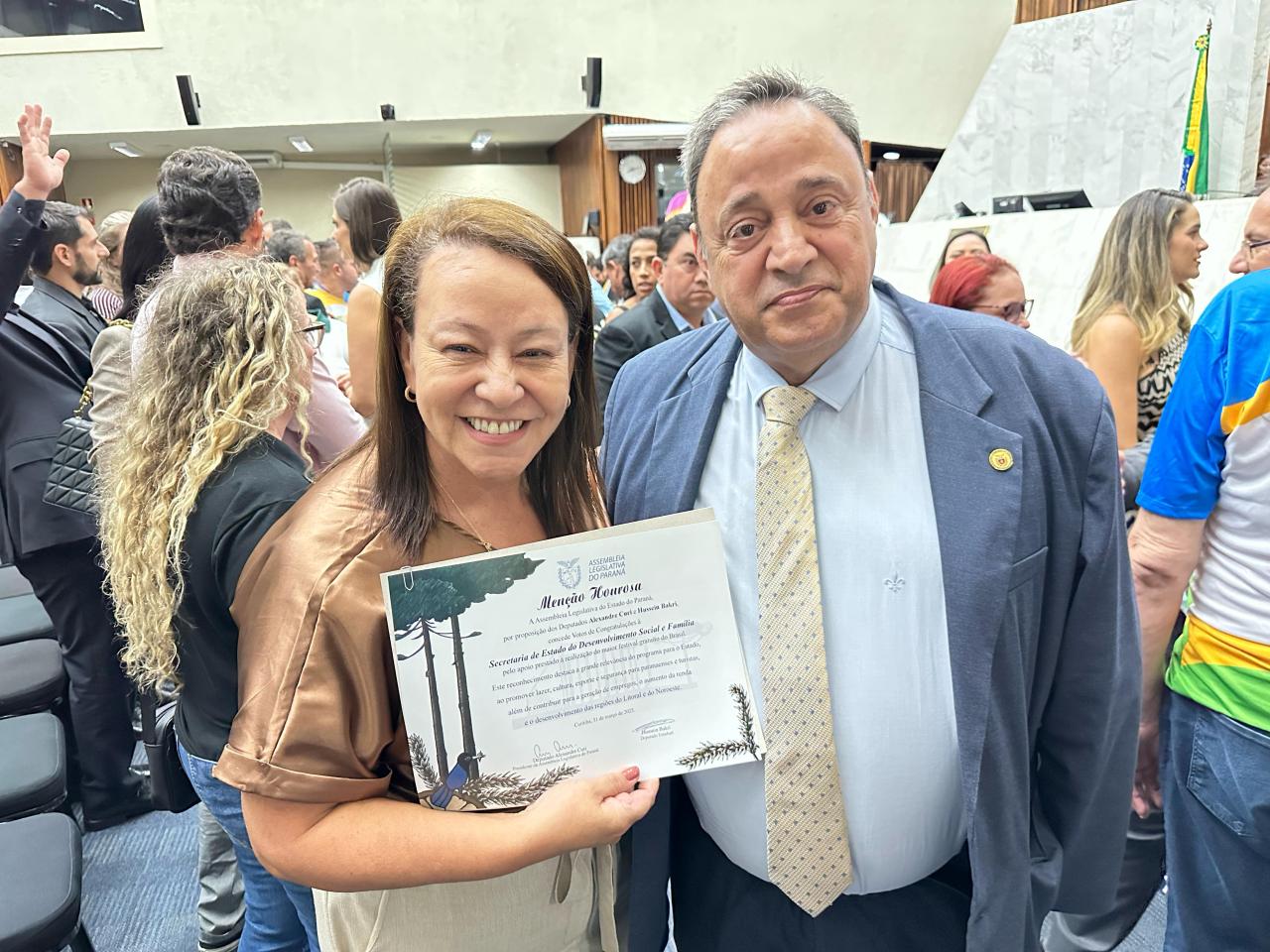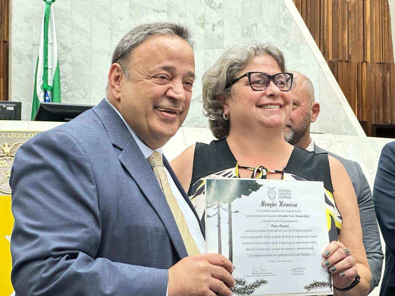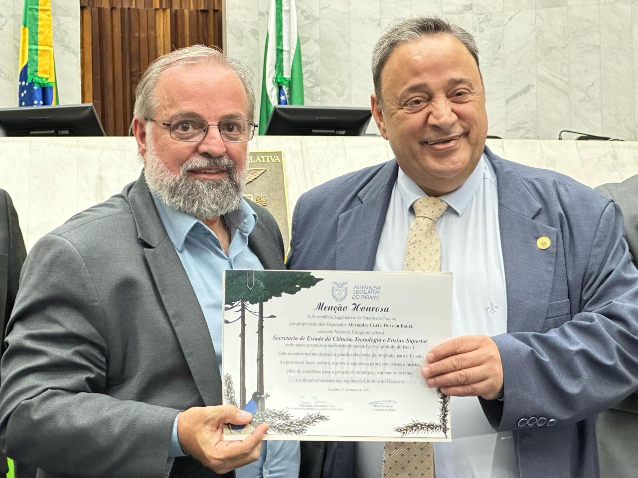 “Estamos prestando nossas homenagens a todos por terem realizado e colaborado com o maior verão da história do Paraná e o maior festival gratuito do Brasil. Quase 2 milhões de pessoas lá estiveram assistindo aos shows. Agradeço a todos vocês por terem contribuído para que o comércio estivesse satisfeito e para que os hotéis estivessem lotados”, comemorou o Presidente da Casa, deputado Alexandre Curi (PSD).