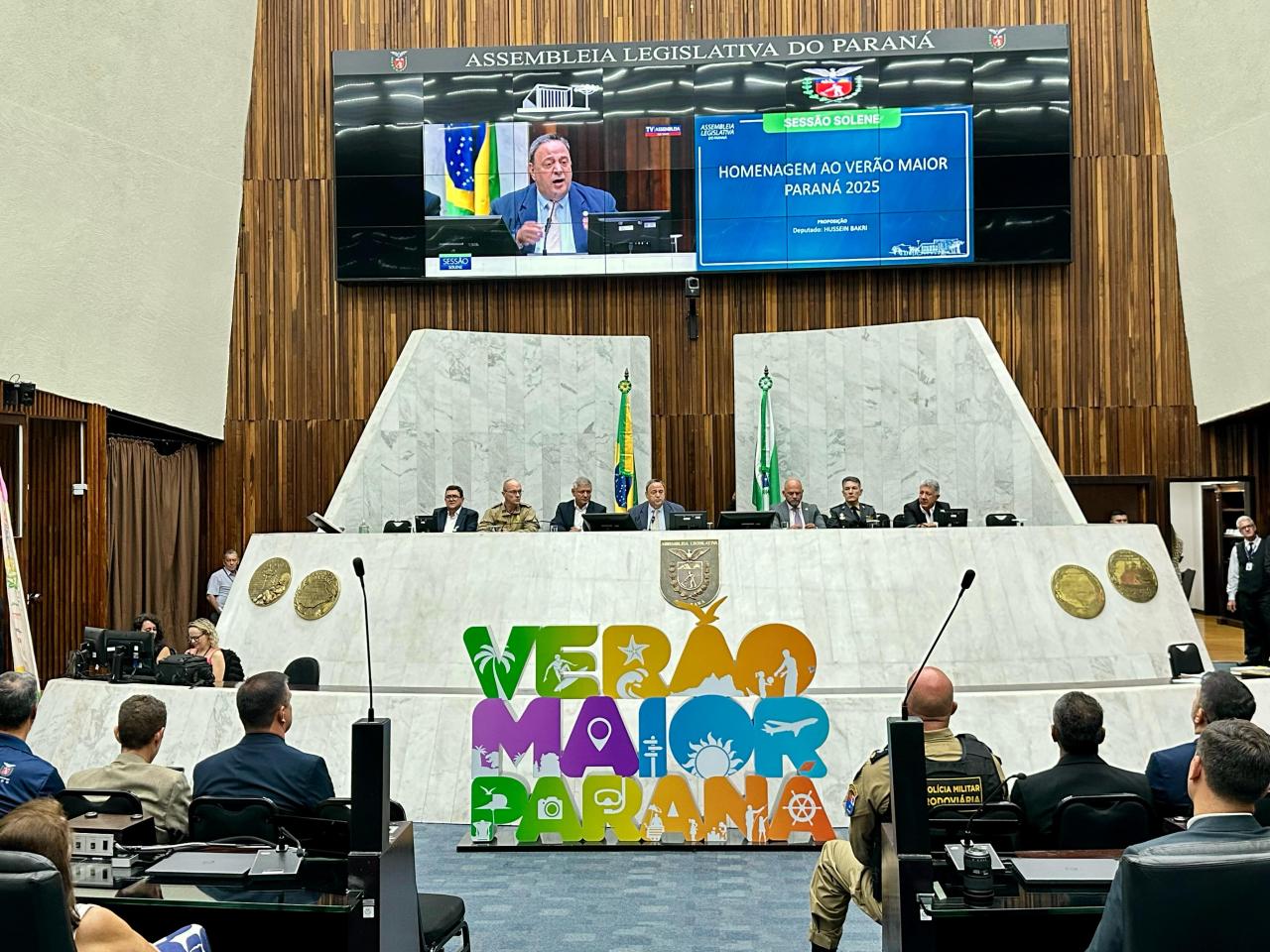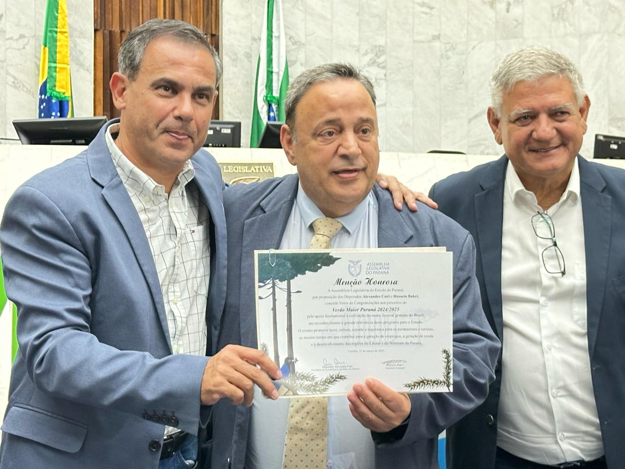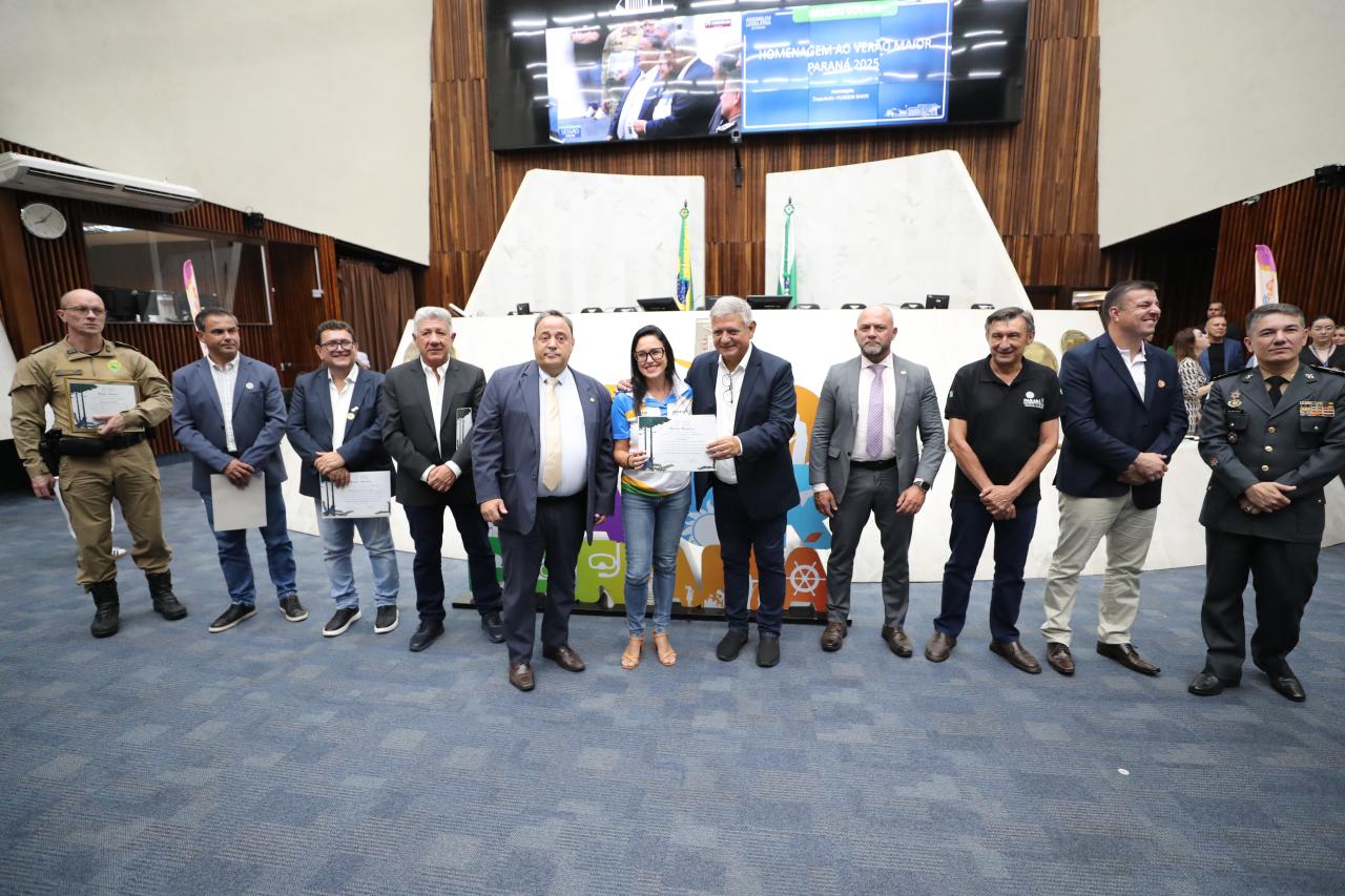 O Verão Maior Paraná 2024/2025 e todos os profissionais envolvidos na programação foram homenageados na noite da última segunda-feira (31) no Plenário da Assembleia Legislativa. A proposta, que partiu do deputado Hussein Bakri (PSD), teve como objetivo reconhecer a relevância do programa promovido pelo Governo do Estado no Litoral e no Noroeste do Paraná entre 28 de dezembro e o mês de fevereiro.