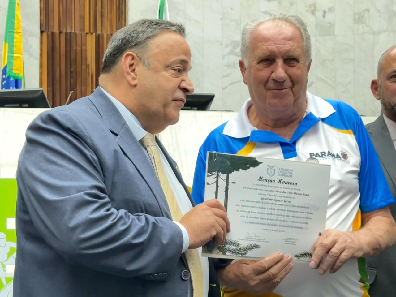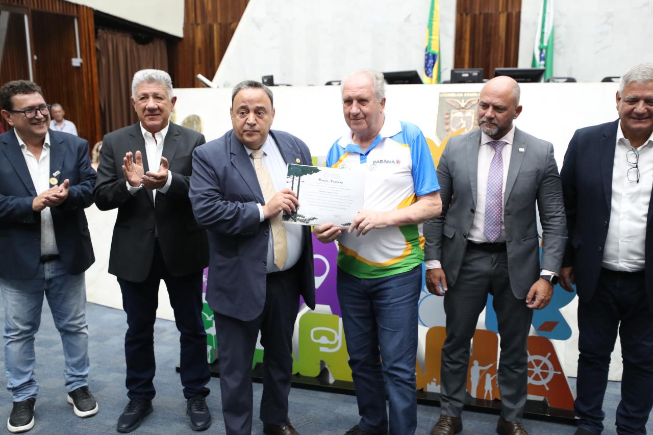 Além da homenagem ao evento e toda a equipe, foi entregue uma menção honrosa ao coordenador-geral do Verão Maior Paraná e secretário estadual do Esporte, Helio Wirbiski.